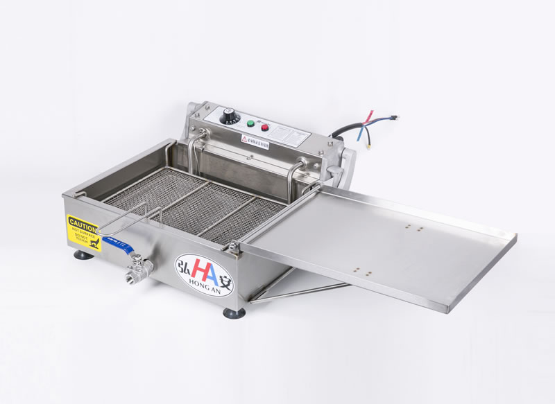 为现烤面包店开发的一款小油炸炉,可油炸醒发好的面包、甜甜圈,网盘尺寸适用于标准醒发箱,可整盘醒发,整盘油炸,整盘出锅。油容量小,功率适中,较大油炉每年可省60%以上的油。